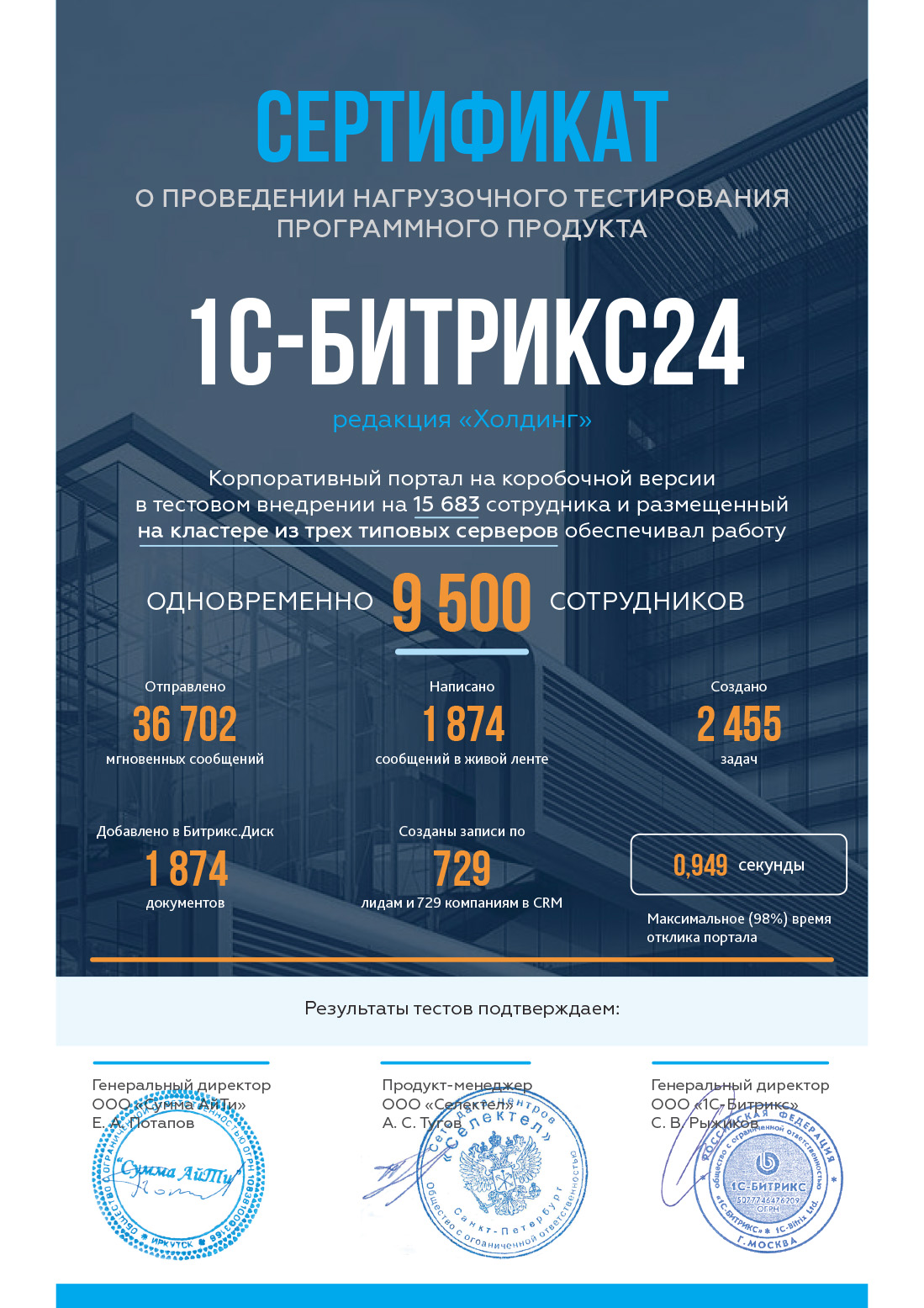 Сертифицированный партнёр 1С Битрикс 24Сертифицированный партнер обладает достаточным опытом в области разработки веб проектов для того, чтобы оказывать профессиональные услуги по подключению,настройке и доработке программ битрикс 24 и корпоративных порталов.